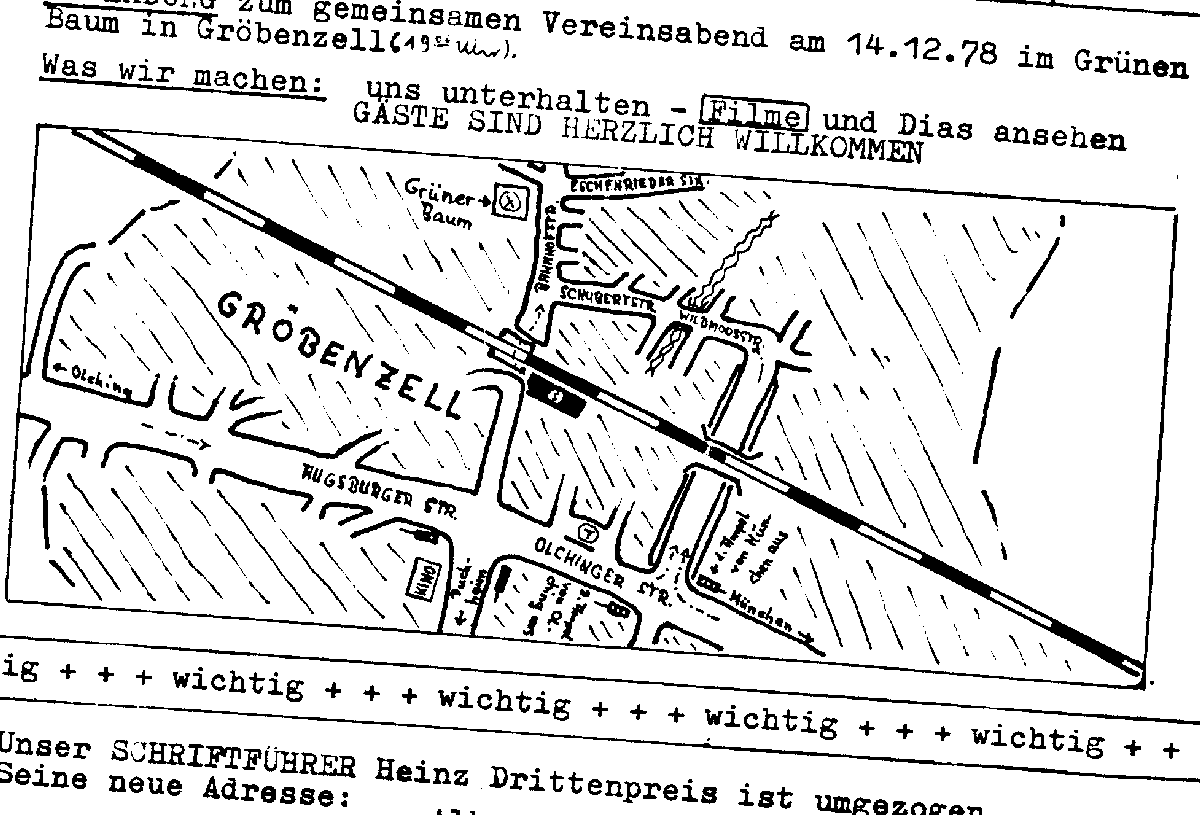 Aus dem Rundschreiben der AVWM, 22.11.78, Einladung zum gemeinsamen Vereinsabend am 14.12.78 im Grünen Baum in Gröbenzell.
